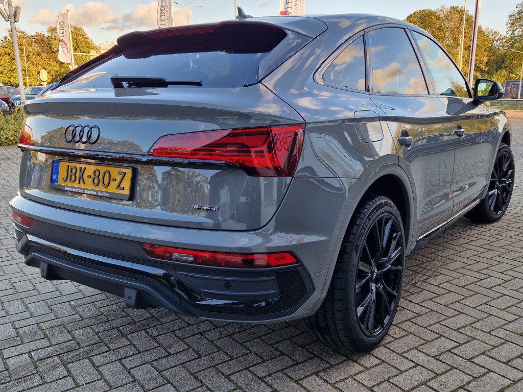 Wauw wat is dit een supermooie en absoluut vol uitgevoerde Q5 Sportback S-Line van Audi! De 55 TFSi/e staat voor een gecombineerd vermogen van 367pk! Tot de zeer luxe en sportieve uitvoering behoort o.a. Black Line Plus pack, 20" 5 spaaks Audi Sport velgen, Matrix led verlichting, Dynamische knippers, Camera, Navi Plus, zwarte hemel, Clima 3 zones, Adaptive cruise, diverse elektr. assistentie systemen, elektr.trekhaak, B&O Soundsystem etc. etc. gewoon teveel om op te noemen! Deze auto wordt u rijklaar aangeboden inclusief nieuwe APK. Meerprijs voor de nwe set 21" Black Audi velgenset met nwe. Kuhmo banden is slechts €1650 !! Op de allerlaatste foto ziet u de bijbehorende orginele 20 inch Audi velgen zie laatste foto!! Wilt U meer service als bv. onderhoudsbeurt, 6 maanden Hatebo garantie en 12 maand mobiliteits service? Dan kunt U kiezen voor ons Service Plus Pakket voor slechts € 725,00!! TIJDELIJK GEHEEL GRATIS !!!! Deze auto is met zorg online geplaatst maar controleer aub voor aankoop de juistheid van zaken die uw beslissing zouden kunnen beinvloeden!